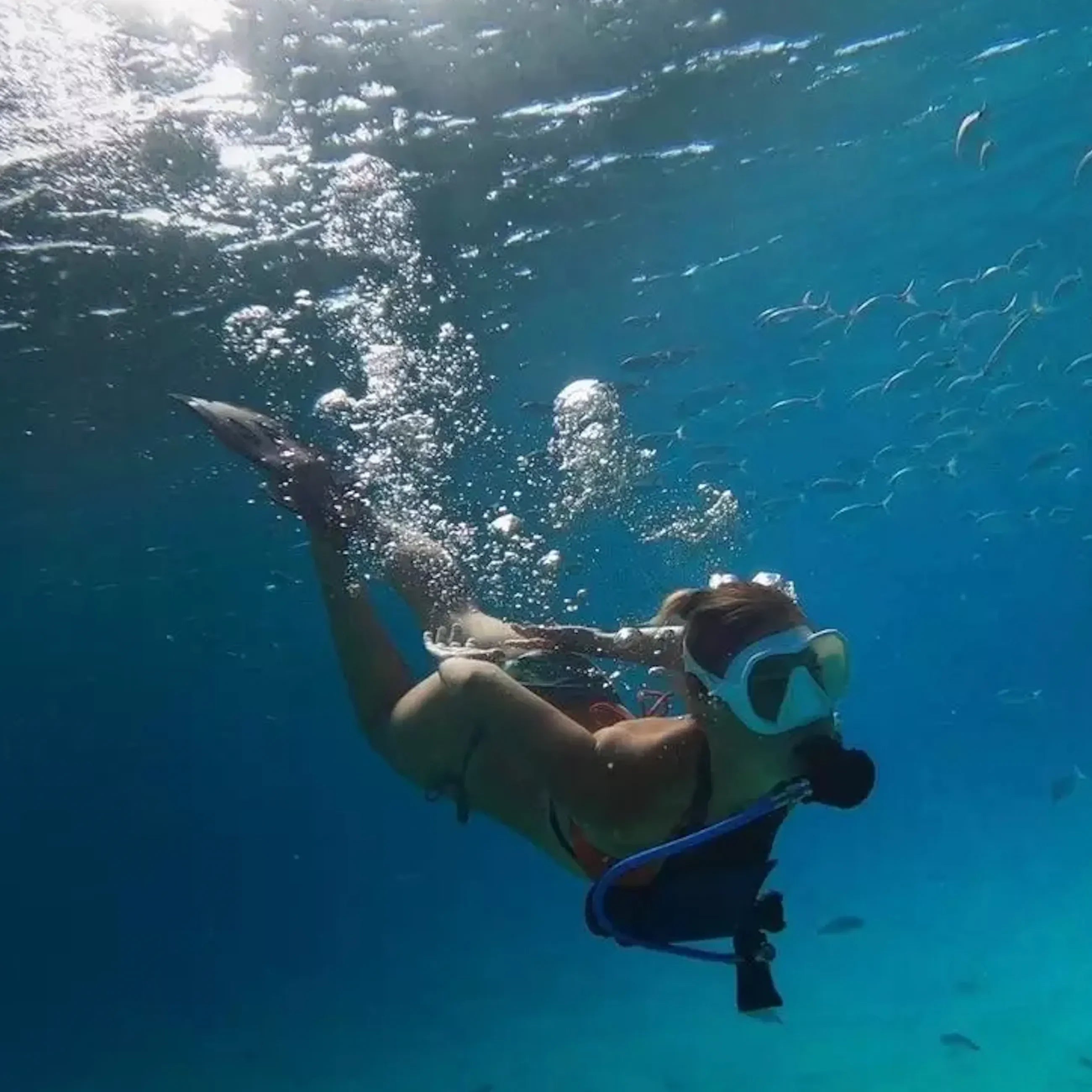 • The carbon cylinder allows you to have a 10 minutes autonomy under water. Its weight is less than 2 kg and its buoyancy is neutral.